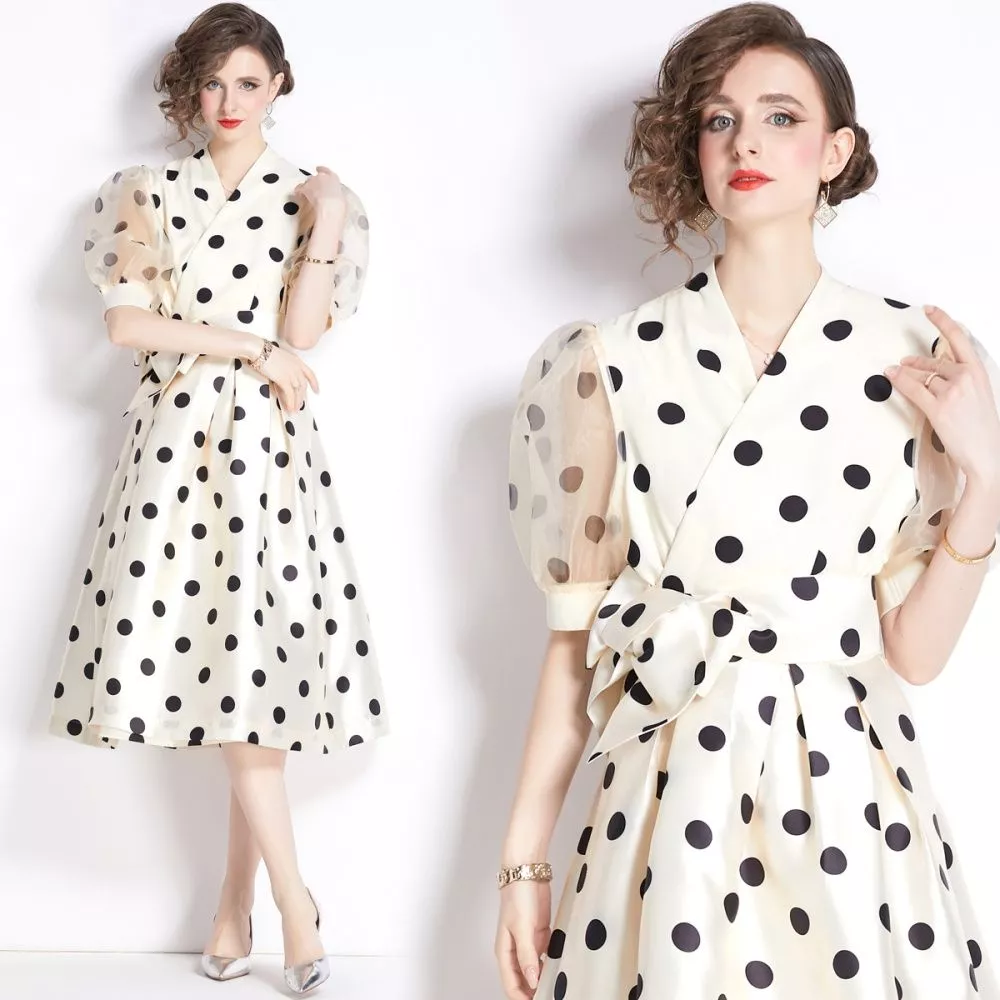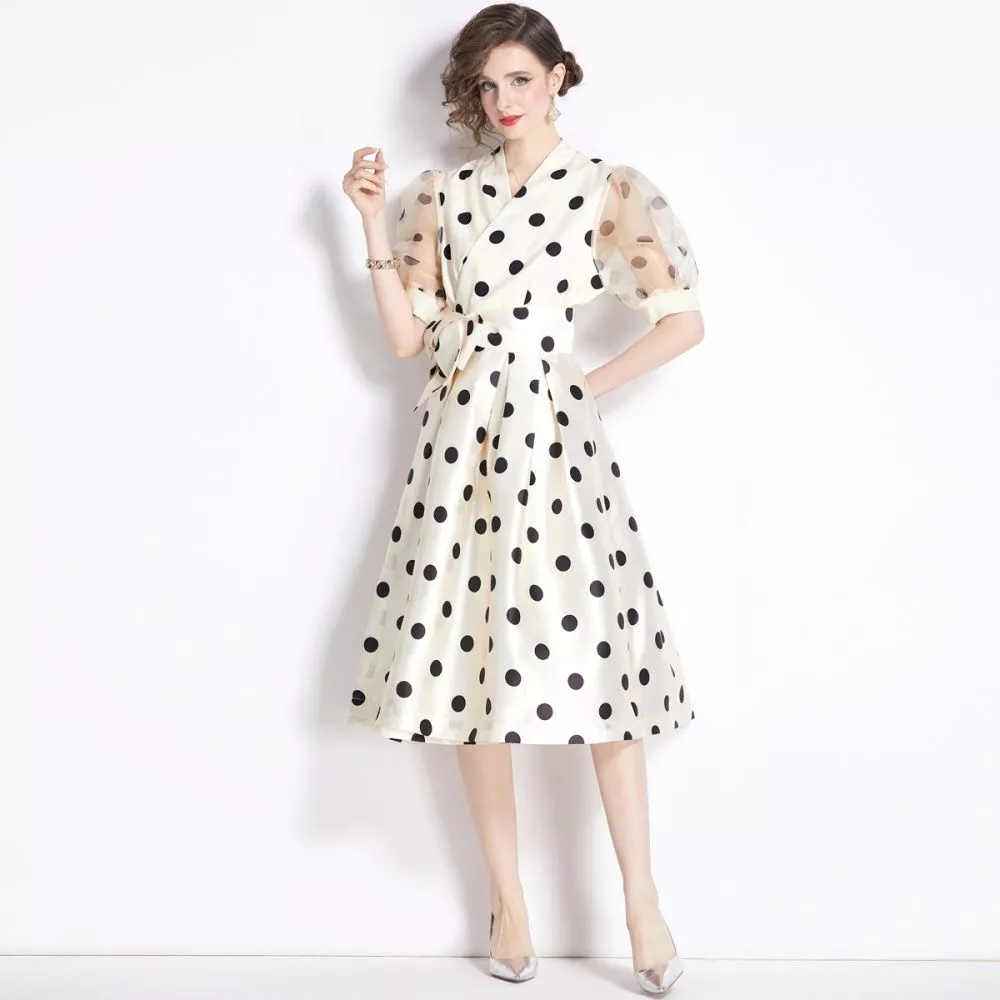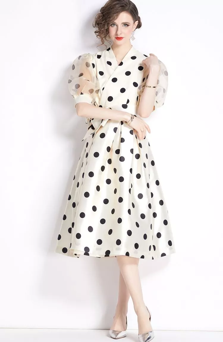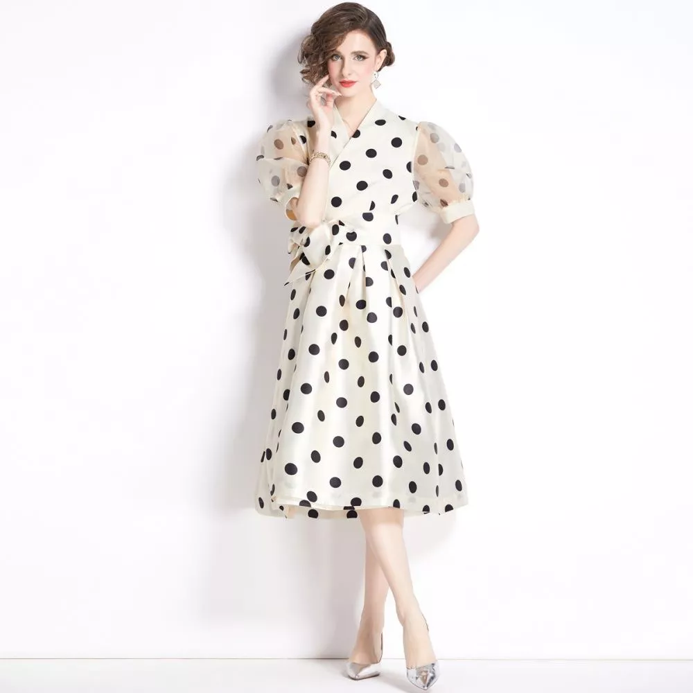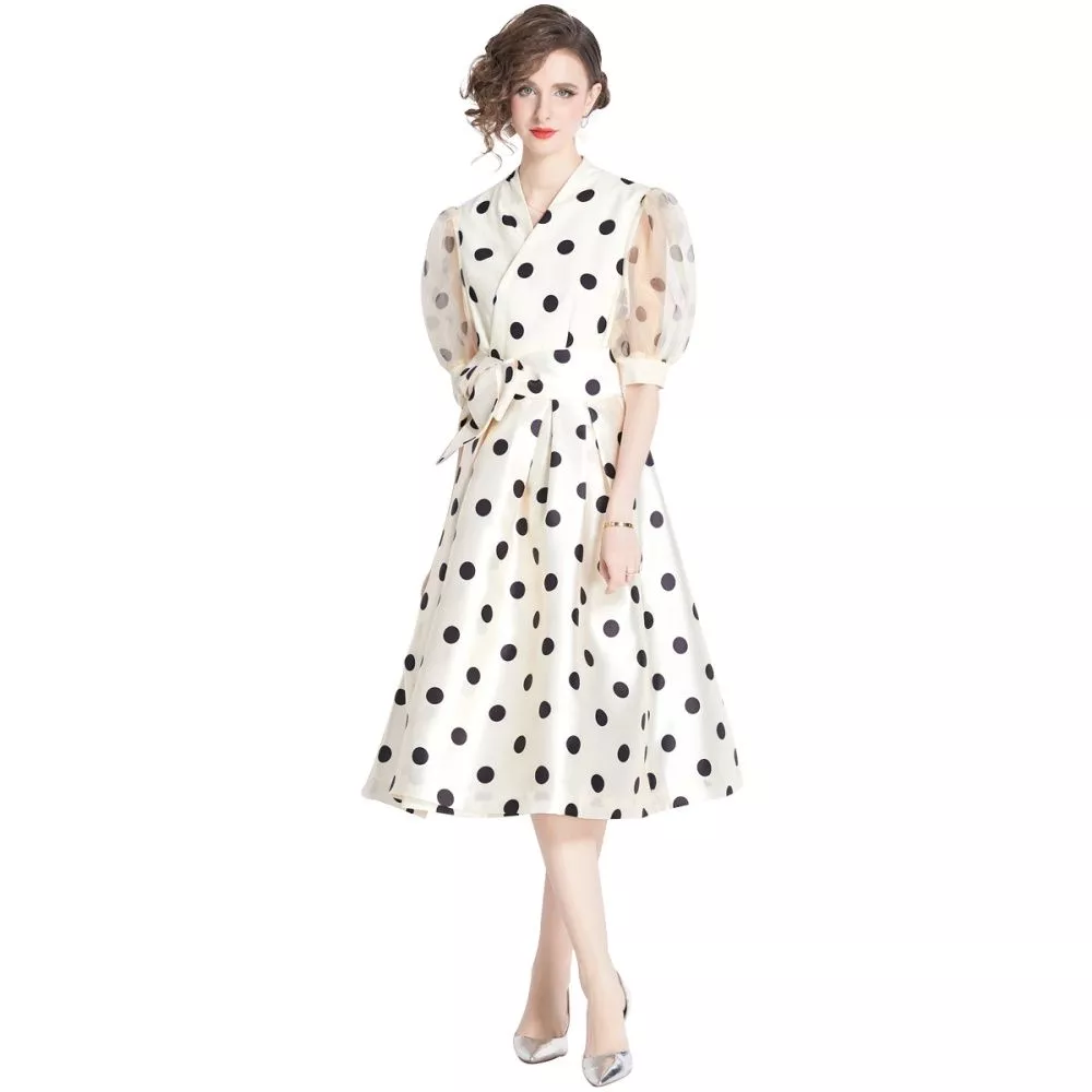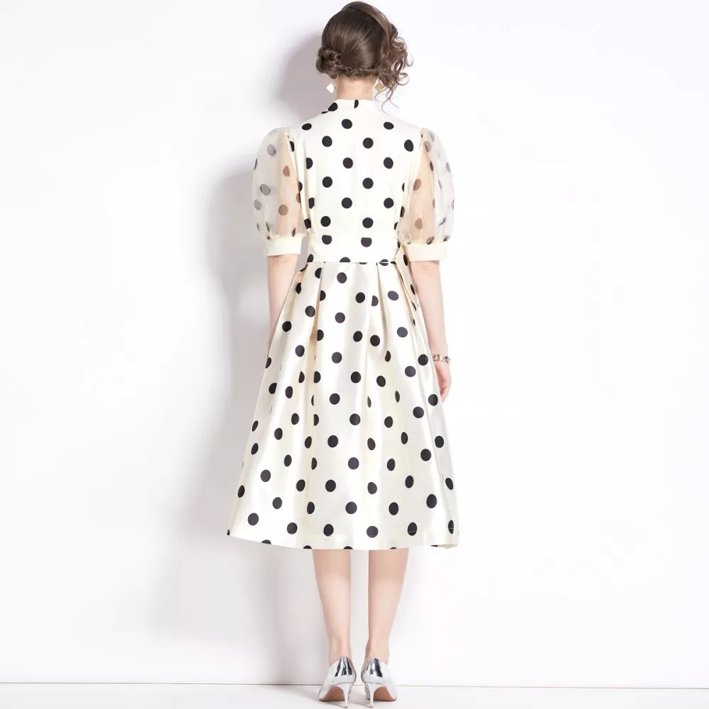 Vestito Abito Donna Elegante Longuette Bianco Nero Pois Vintage GIPSY 08903