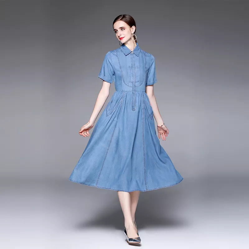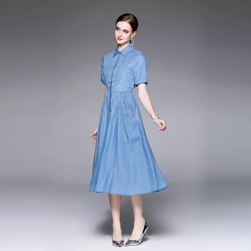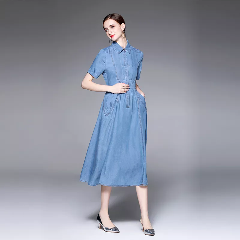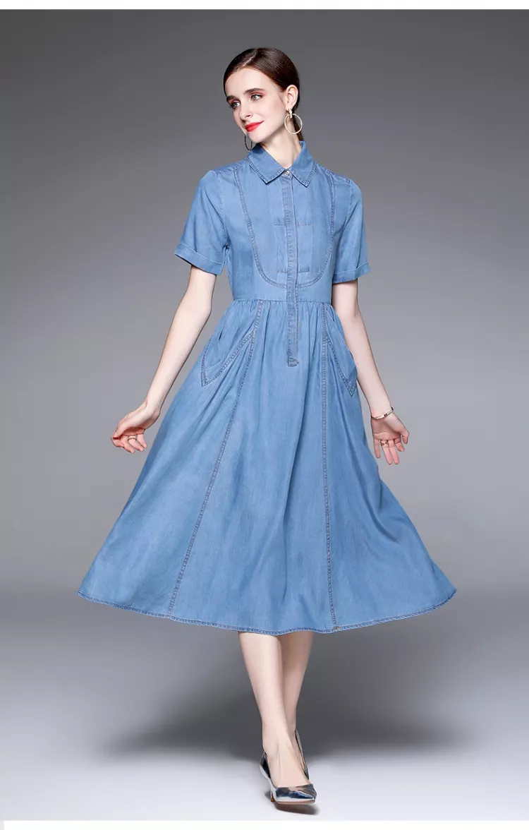 vestito abito donna longuette vintage jeans denim blu scamiciato GIPSY 20434