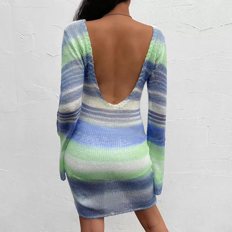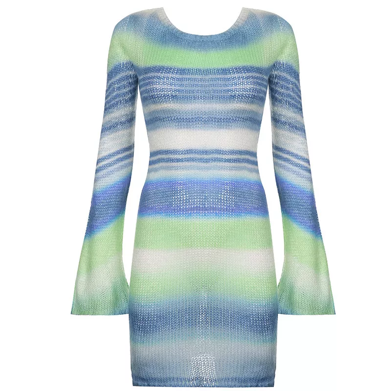 Vestito abito donna tubino morbido maglia perforato scollato verde colorato A357