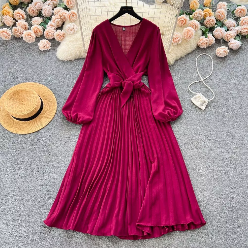 Vestito Abito Elegante Lungo Cintura Bohoo Chic Rosa Cintura Raso 76866