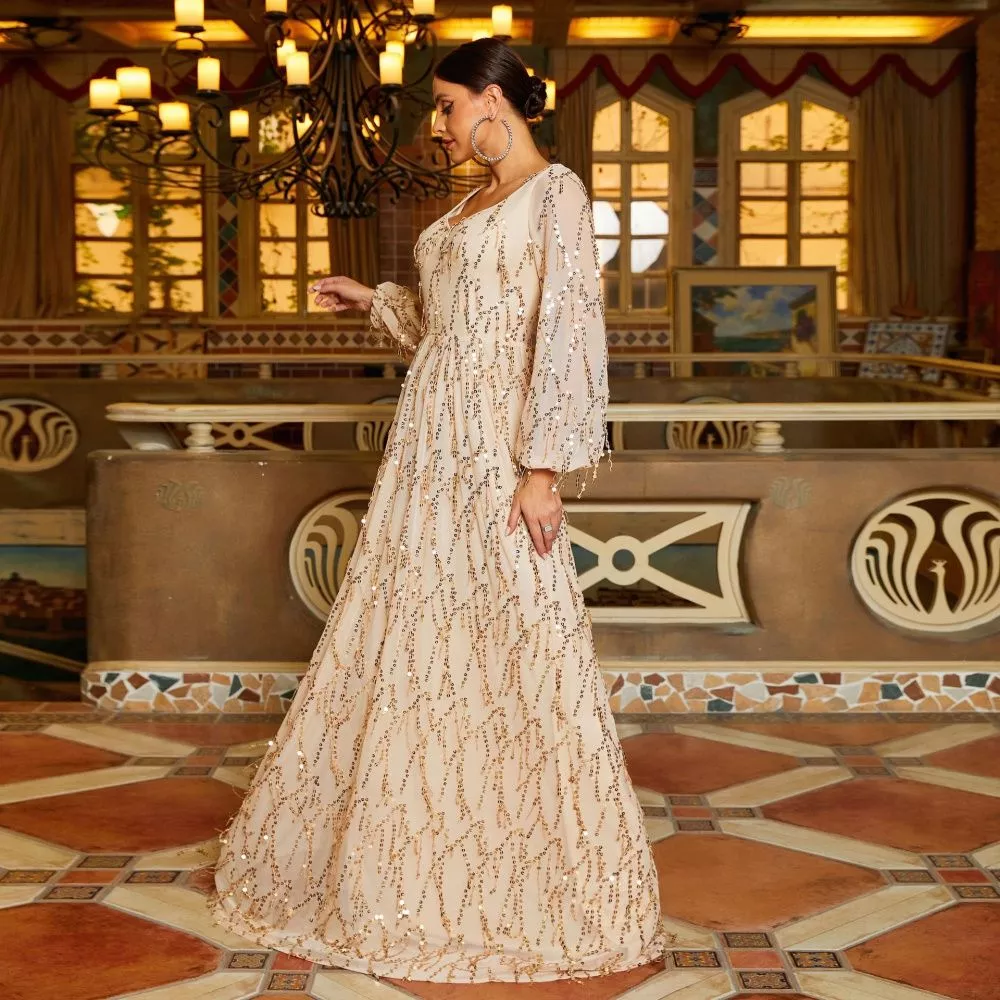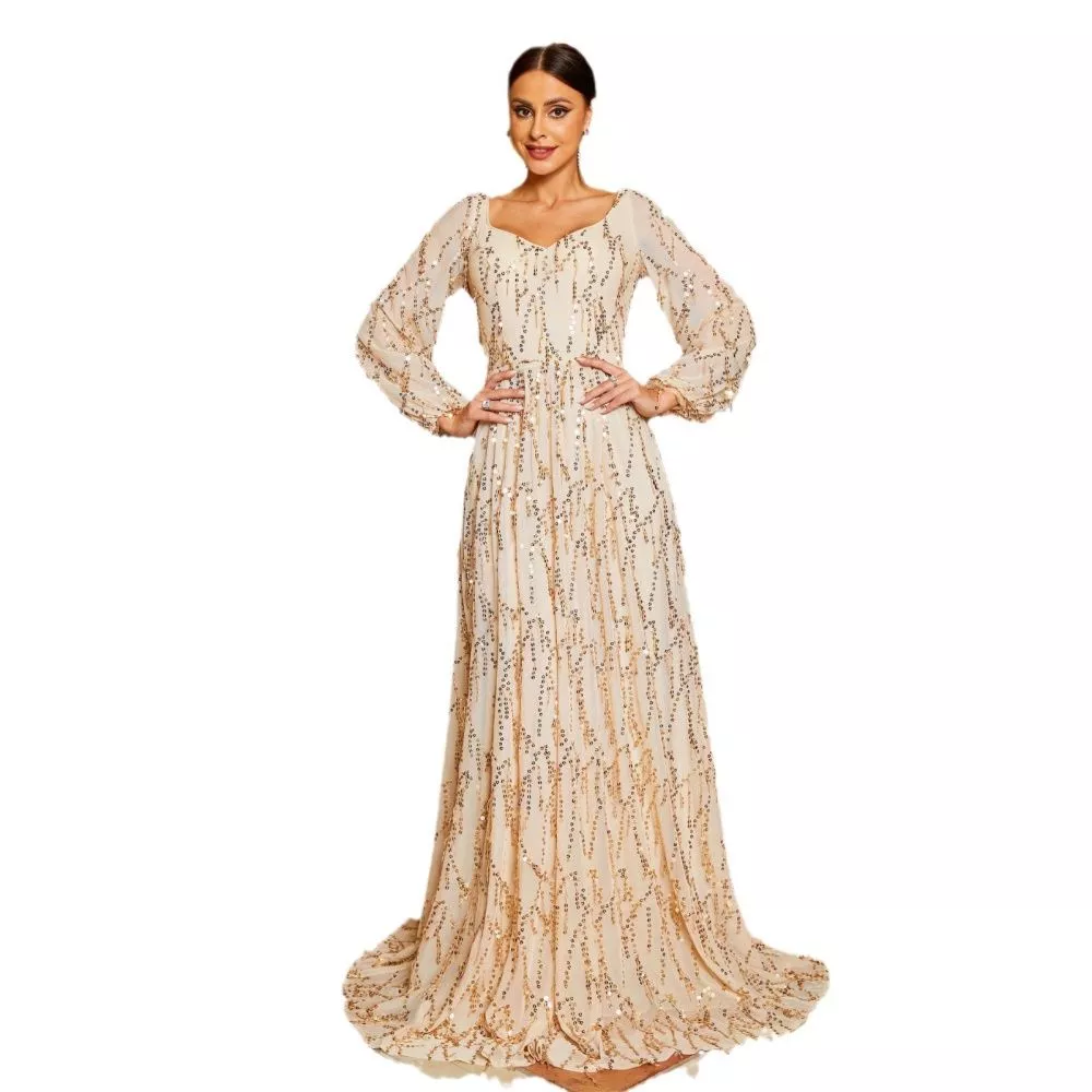 Vestito Abito Elegante Lungo oro Strass Fascia Morbido Sera Spacco 06403