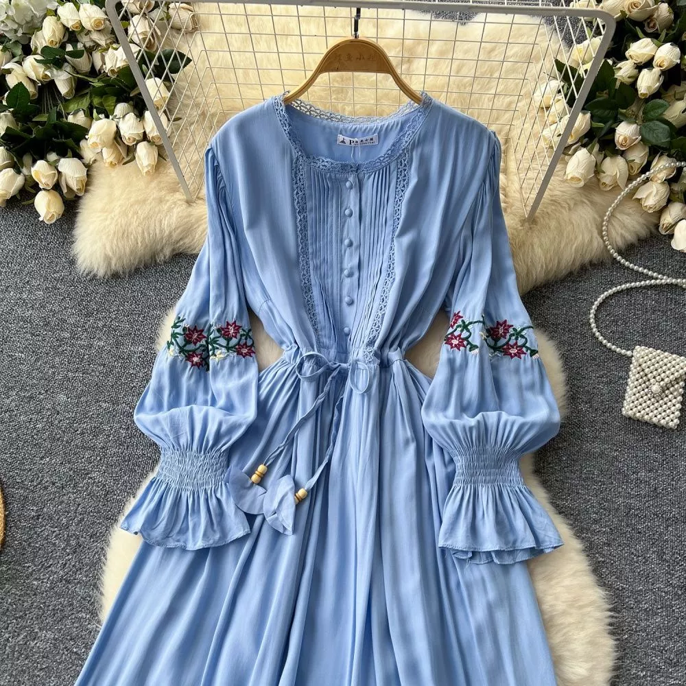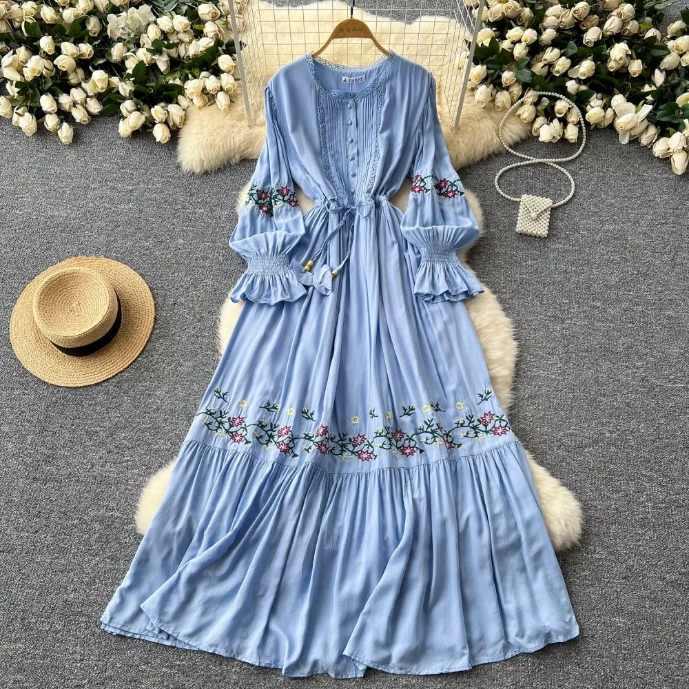 Vestito Abito Lungo Scamiciato Bohoo Morbido Chic Raso Azzurro Over 21441
