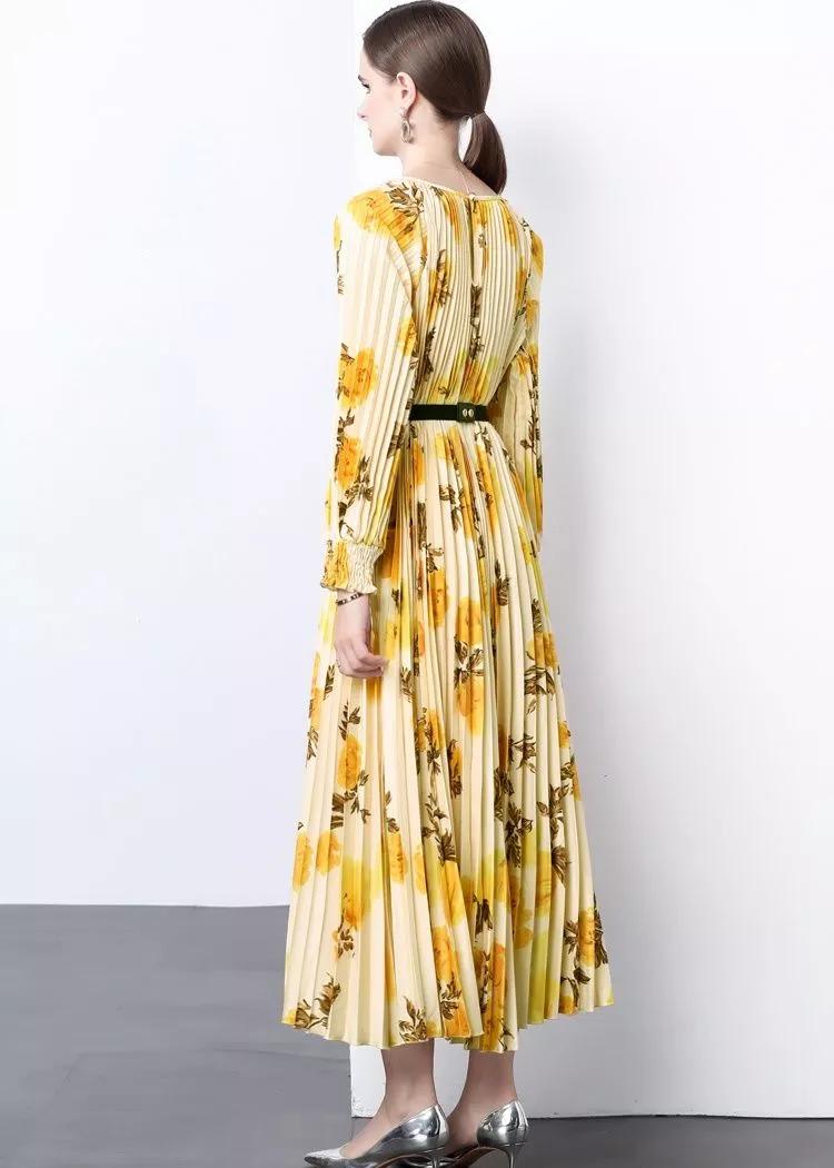 Vestito Abito Lungo Scamiciato Bohoo Morbido Giallo Fiori Cintura GIPSY 22973