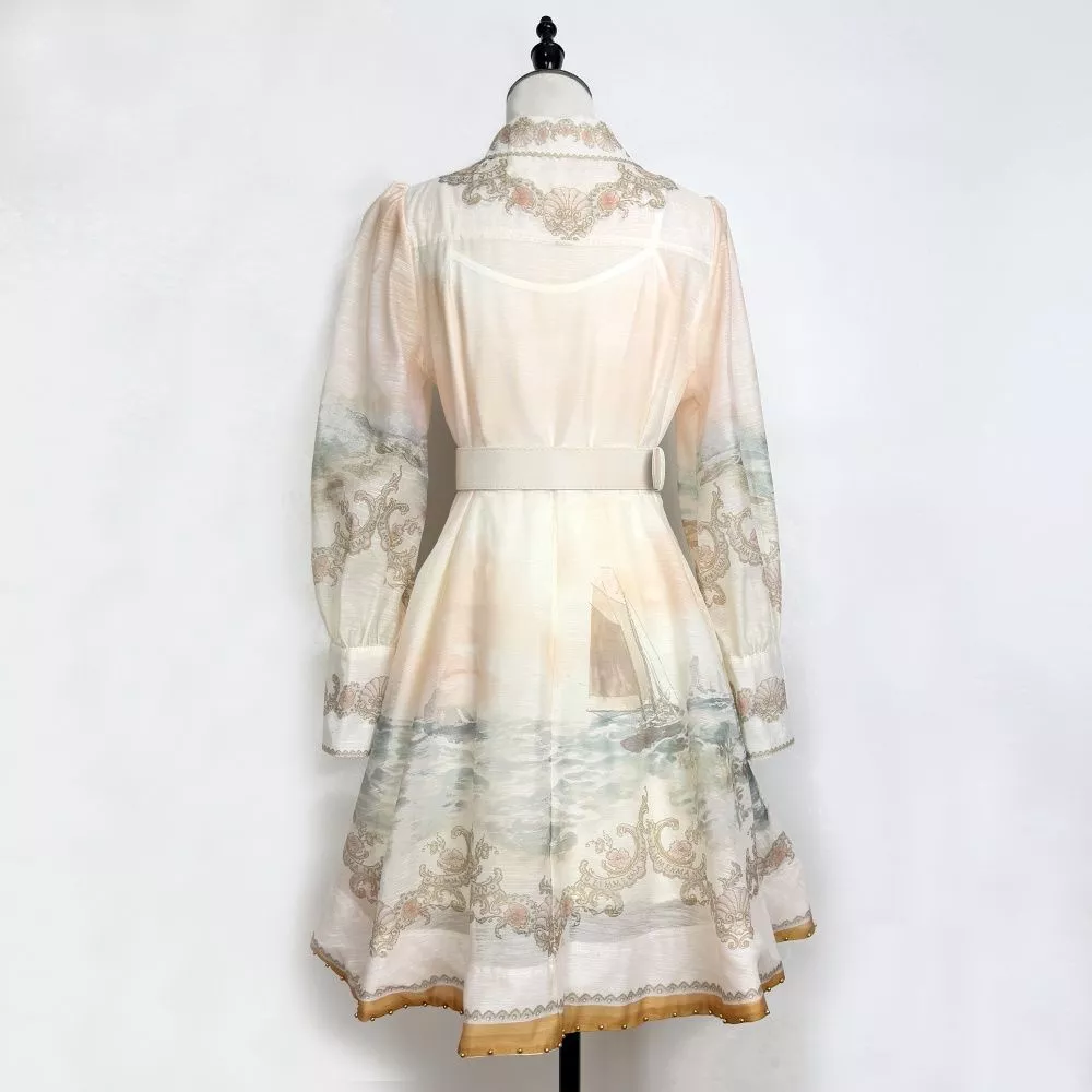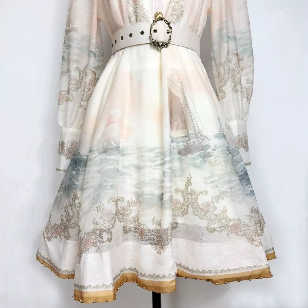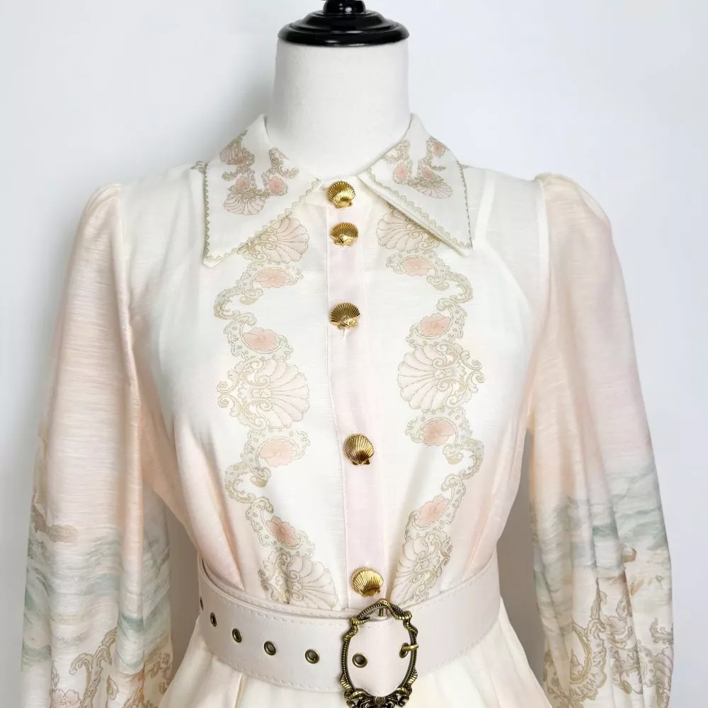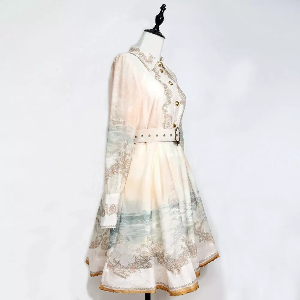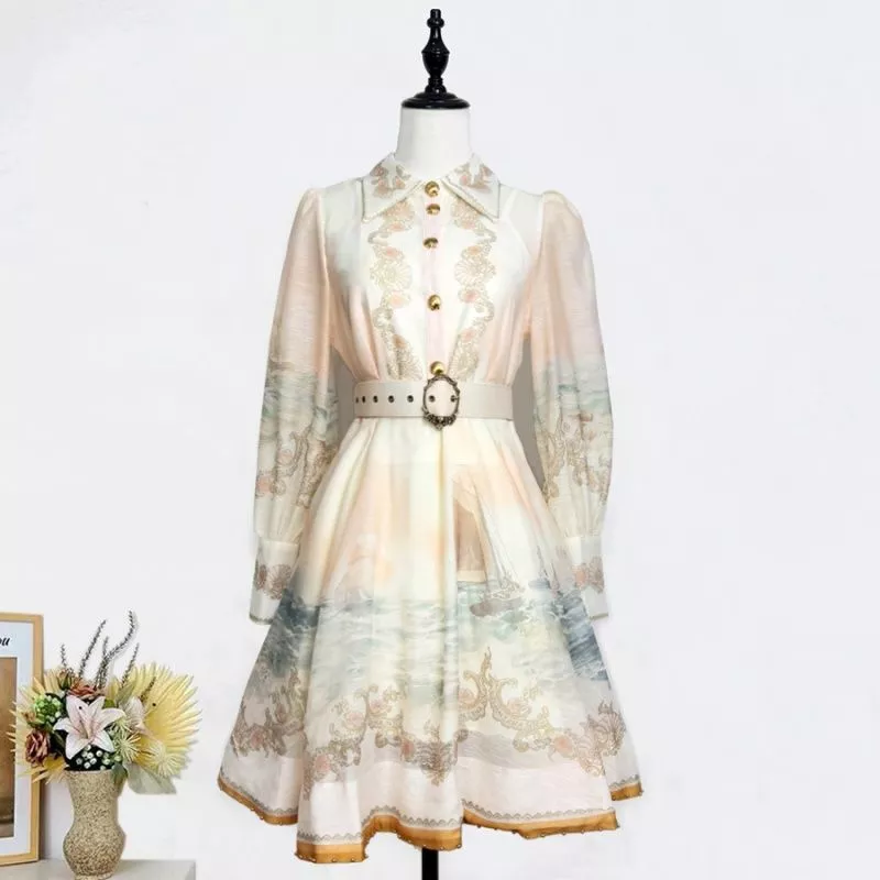 Un vestito albicocca elegante e ricercato, pensato per valorizzare la figura con una silhouette armoniosa e femminile. La fantasia raffinata con dettagli artistici crea un effetto visivo luminoso e delicato, mentre la cintura coordinata definisce la vita in modo naturale, rendendo il modello ideale per cerimonie, eventi, serate speciali o occasioni formali.
