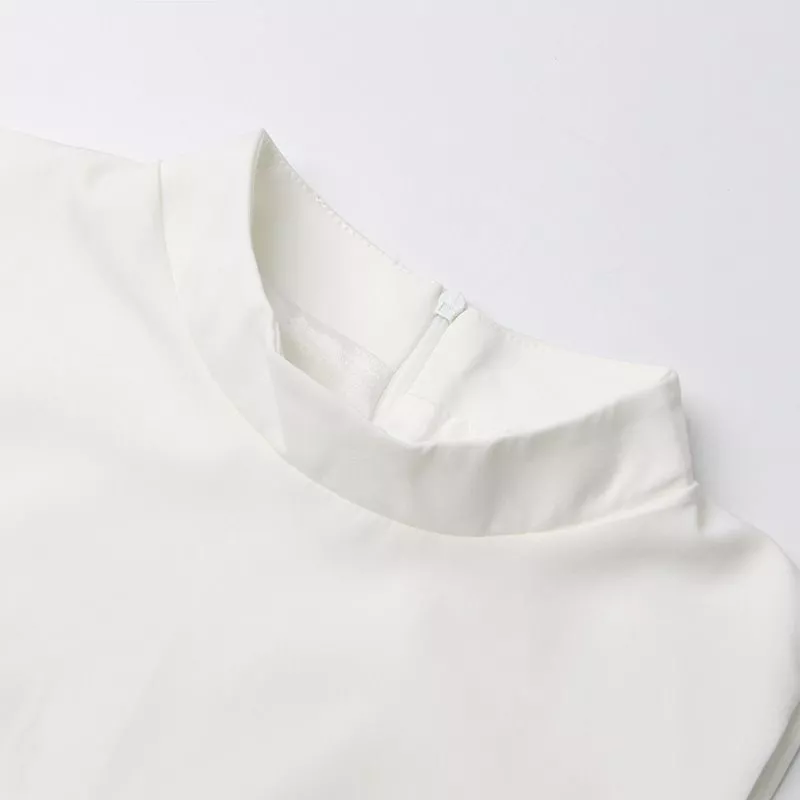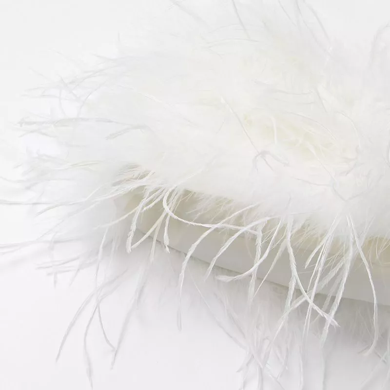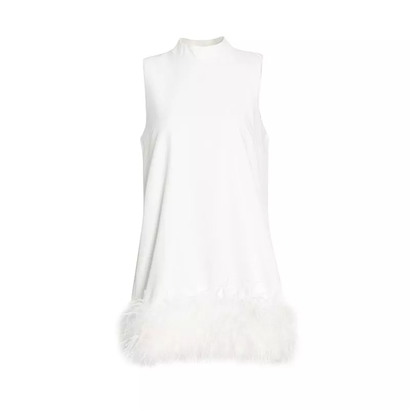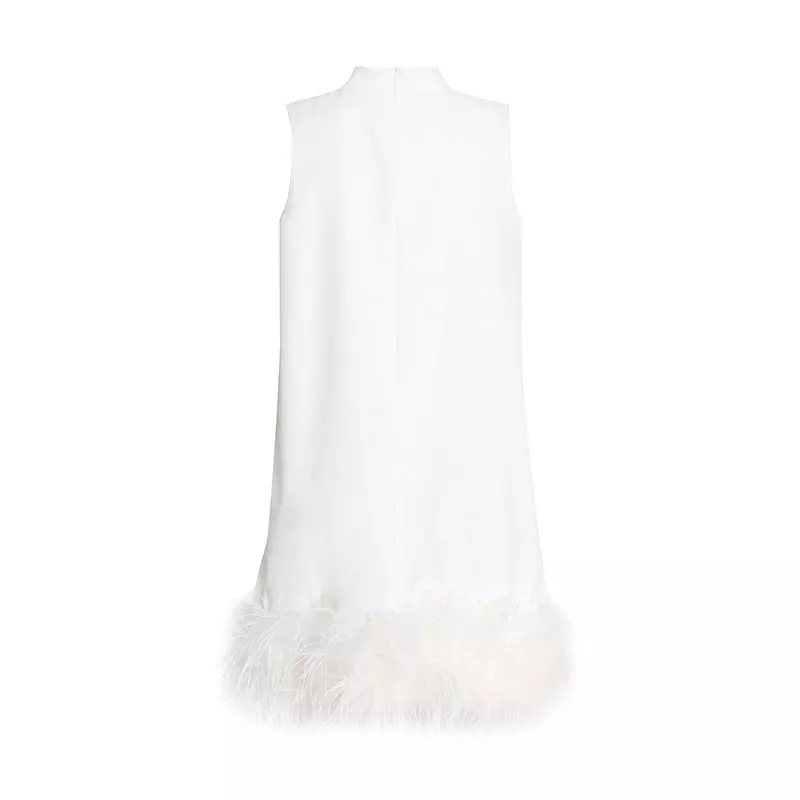 Vestito Corto Bianco Elegante Con Piume Sul Fondo Senza Maniche CF48199