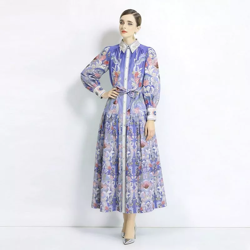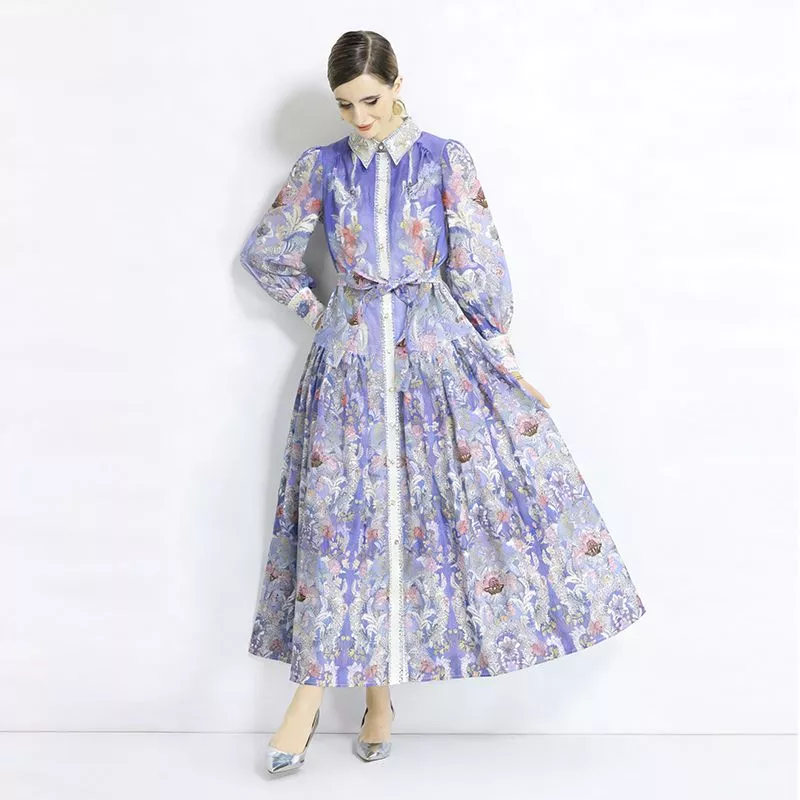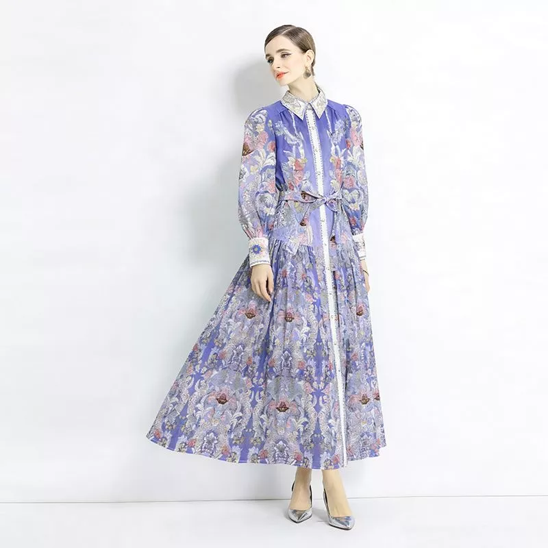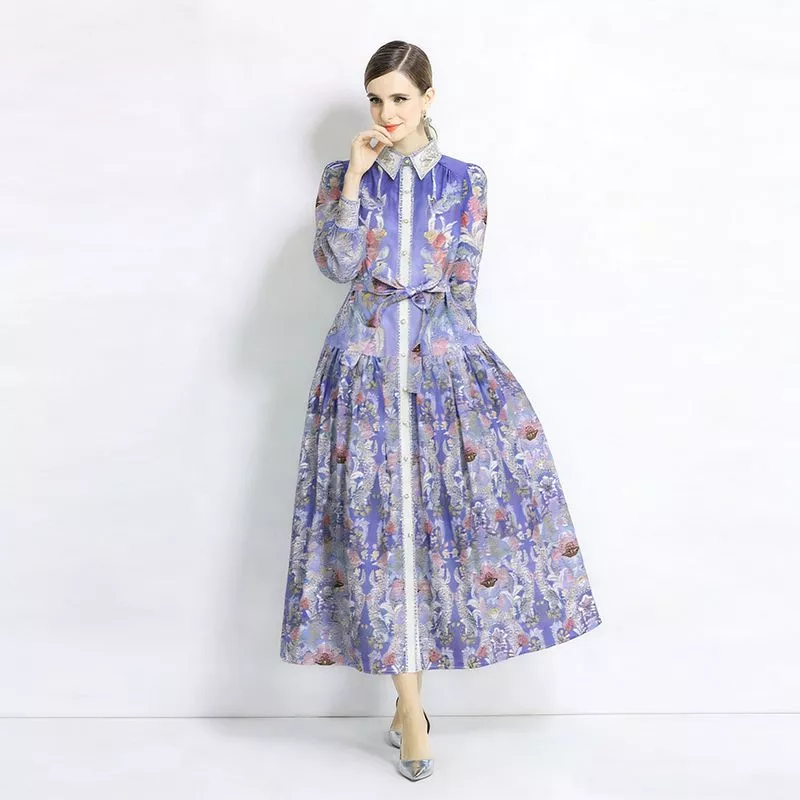 Vestito lungo elegante con stampa floreale perfetto per cerimonie di giorno ed eventi speciali. La vita regolabile con cintura valorizza la silhouette mentre la gonna ampia dona movimento e raffinatezza. Ideale per look romantici e femminili.