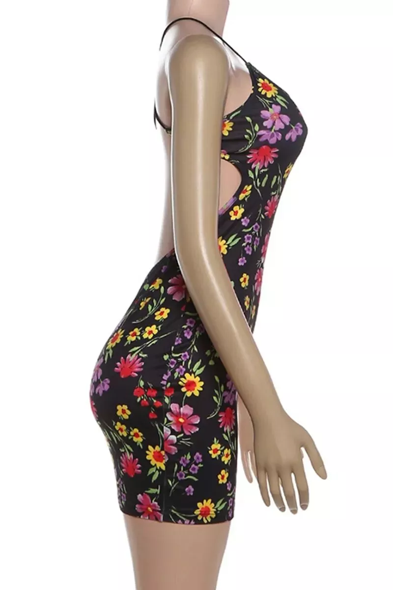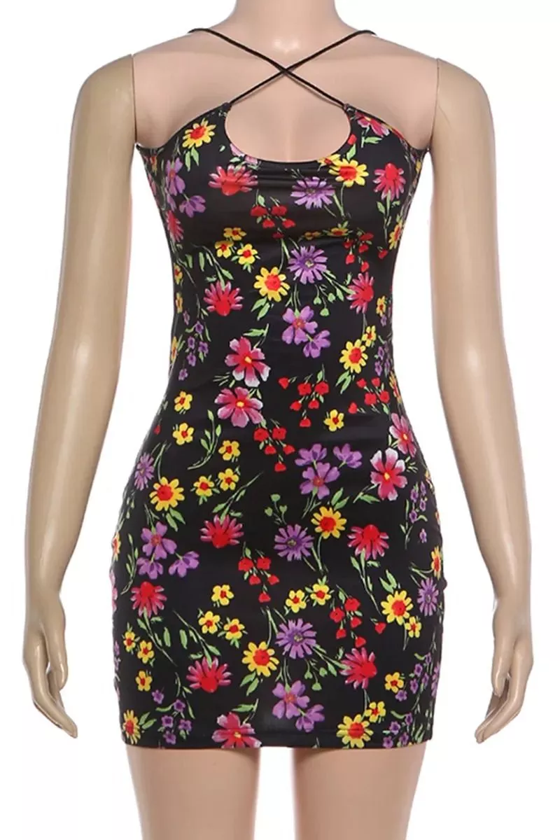 Vestito Donna Floreale Sexy Aderente Mini Abito Estivo Schiena Scoperta CF32937