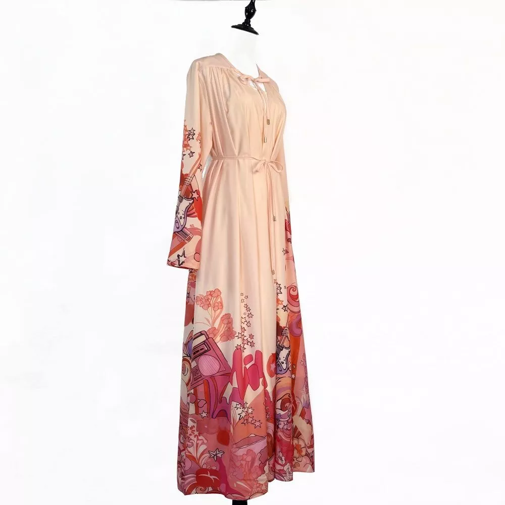 Vestito Donna Lungo Rosa Fantasia Floreale Stile Boho Con Maniche Lunghe CF64736