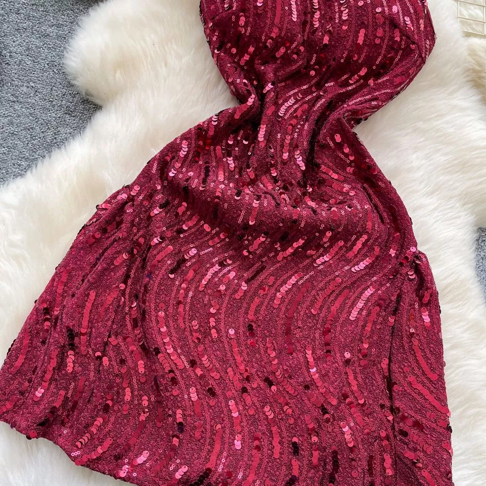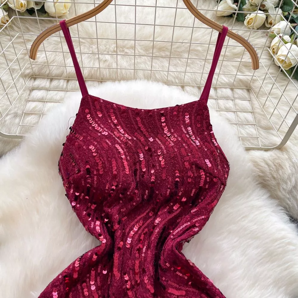 Vestito donna dal design elegante e deciso, caratterizzato da una lavorazione interamente ricoperta di paillettes con motivo ondulato che crea movimento e luminosità sulla superficie. La linea aderente valorizza la silhouette in modo femminile, mentre le spalline sottili e la scollatura dritta donano equilibrio e pulizia al design. Un capo pensato per occasioni speciali, eventi serali o look eleganti dove l'impatto visivo è protagonista senza risultare eccessivo.