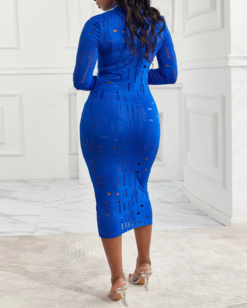 La lunghezza midi dona equilibrio alla figura e rende questo modello visivamente slanciato, mentre le maniche lunghe e la linea asciutta aggiungono un tocco elegante e contemporaneo. Il risultato è un vestito d'impatto, sensuale ma ordinato, ideale per chi cerca un capo protagonista, con forte presenza visiva e stile moderno.