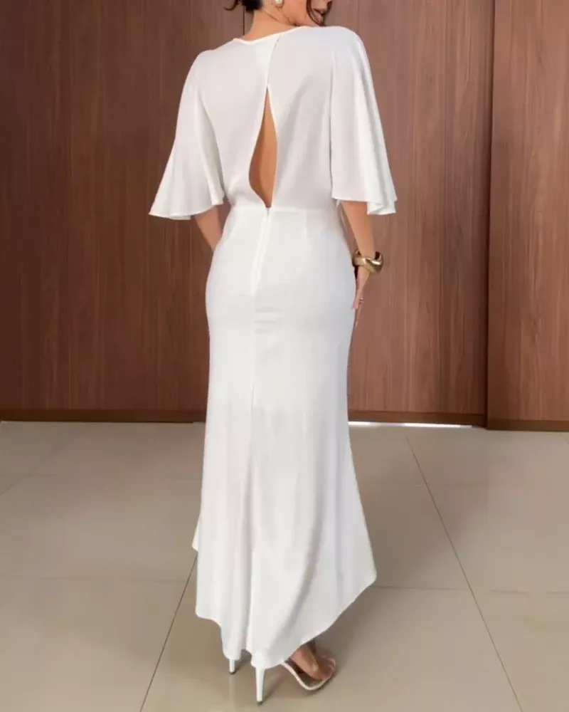 Vestito Elegante Lungo Bianco Con Spacco Morbido Maniche Ampie CF78452