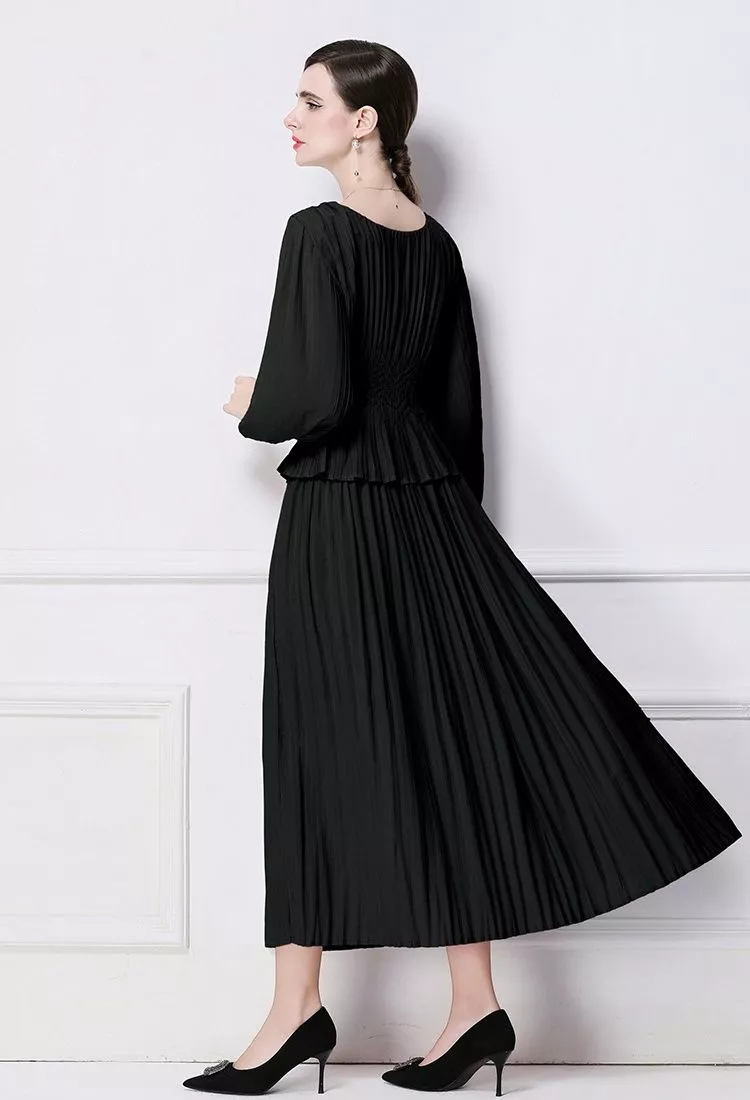 Questo vestito plissé con perline sulla parte superiore unisce eleganza e stile romantico, perfetto per cerimonie e invitate. Il corpino arricciato slancia la figura, mentre la gonna plissé aggiunge movimento fluido e raffinato. Le maniche lunghe completano un look femminile e ricercato, disponibile in tonalità moderne che valorizzano ogni incarnato.