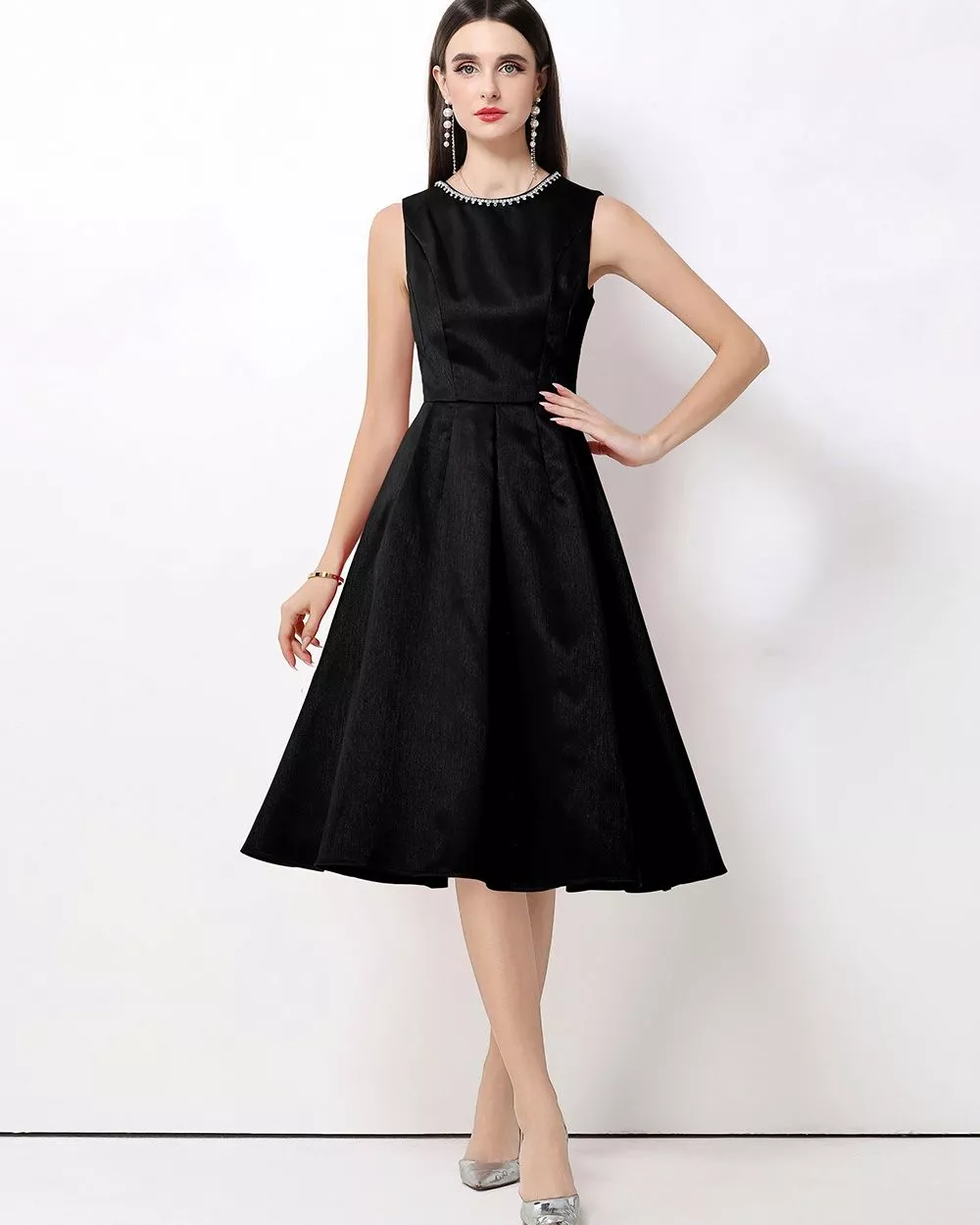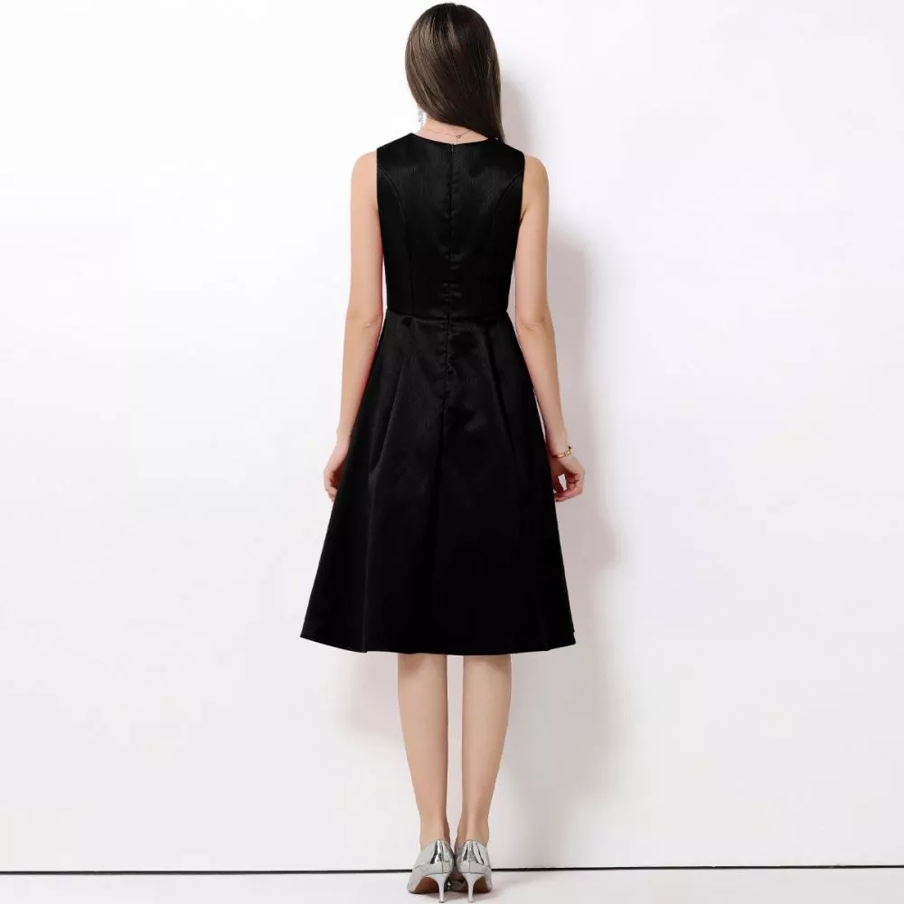 Vestito Elegante Senza Maniche Con Scollatura Girocollo E Strass Nero CF65930