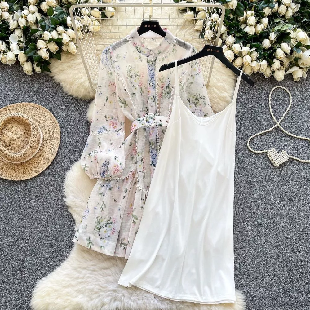 Vestito elegante e raffinato perfetto per cerimonie ed eventi. La stampa floreale delicata dona un look femminile e sofisticato mentre la cintura decorativa valorizza la silhouette. L’abito sottoveste coordinato garantisce comfort e vestibilità rendendo questo modello ideale per outfit eleganti e ricercati.