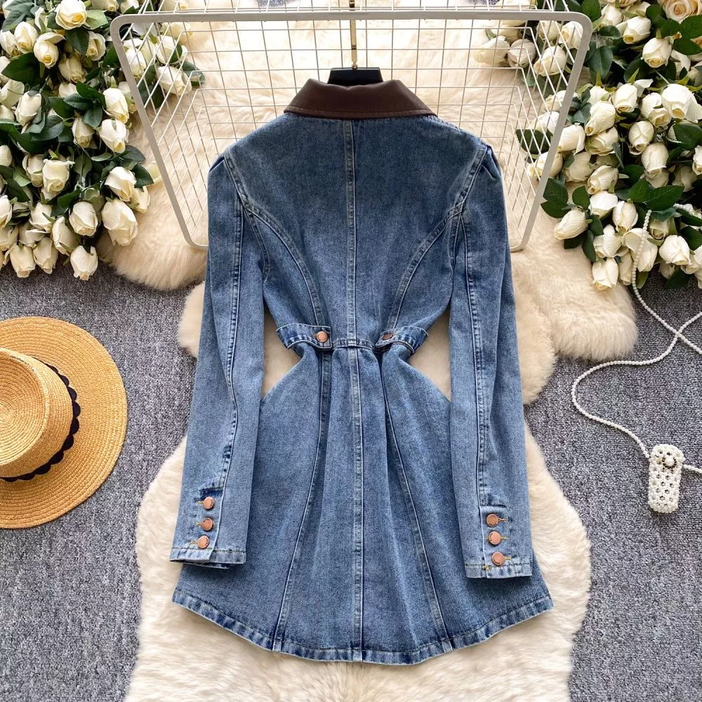 Vestito Jeans Denim Donna Con Colletto A Contrasto E Vita Alta Sagomata CF64939