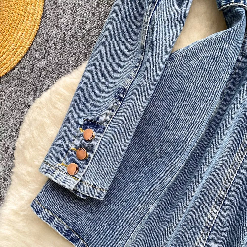 Vestito donna in jeans denim dal gusto rétro rivisitato in chiave moderna, caratterizzato da una linea femminile e ben strutturata. Il design è studiato per valorizzare la figura grazie alla vita alta sagomata e alla costruzione modellante sul busto, che accompagna naturalmente le forme senza costringere.
