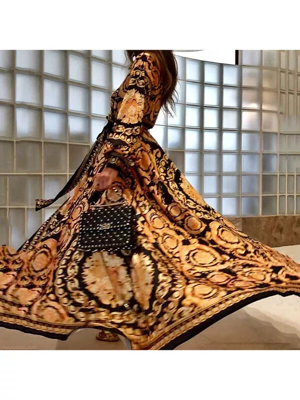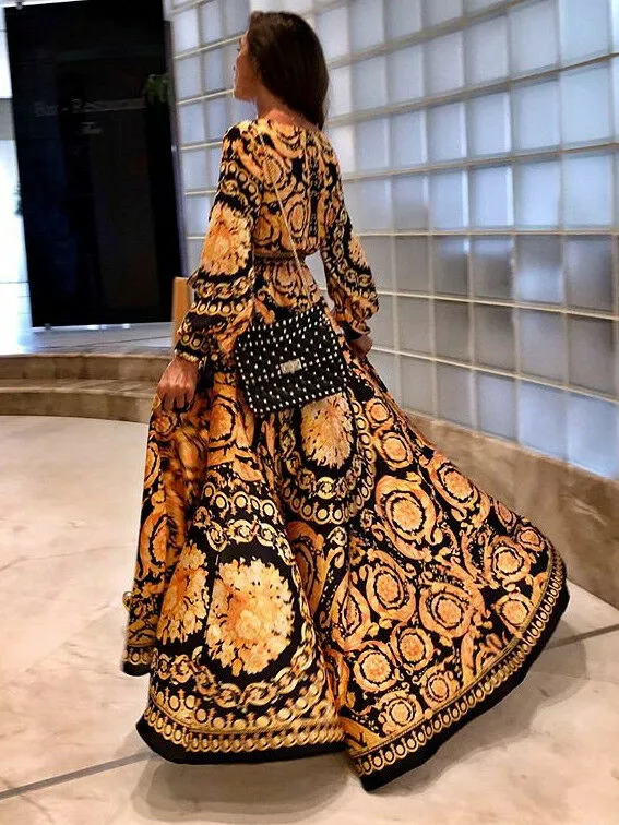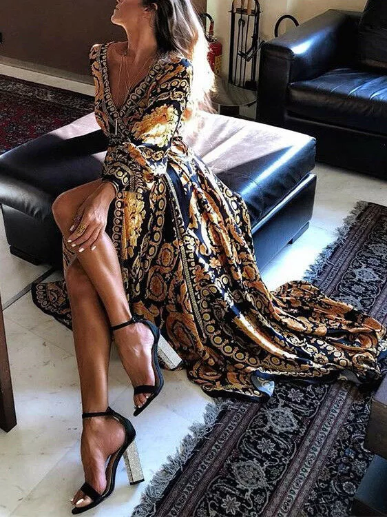 vestito lungo abito spacco elegante nero oro slim morbido moda manica s m 42