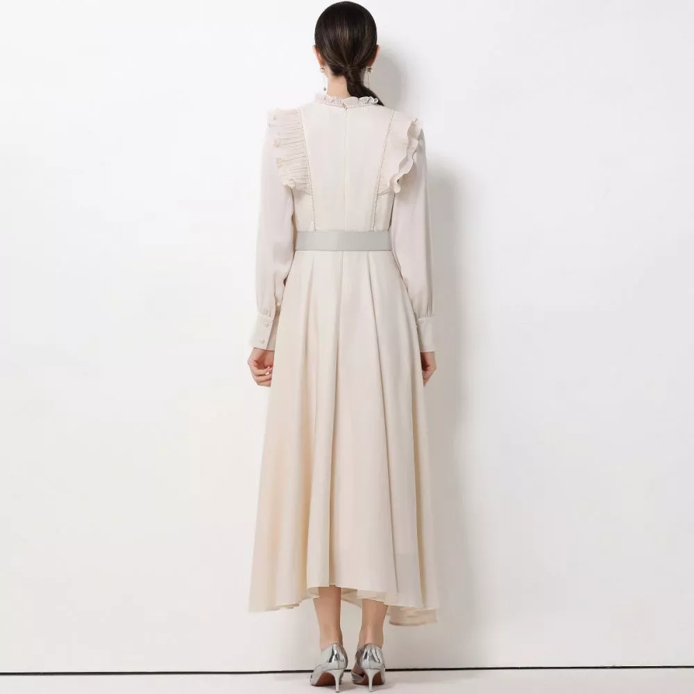 Vestito Lungo Elegante Albicocca Con Ricamo Maniche Lunghe Cerimonia CF61929