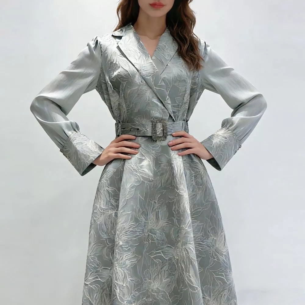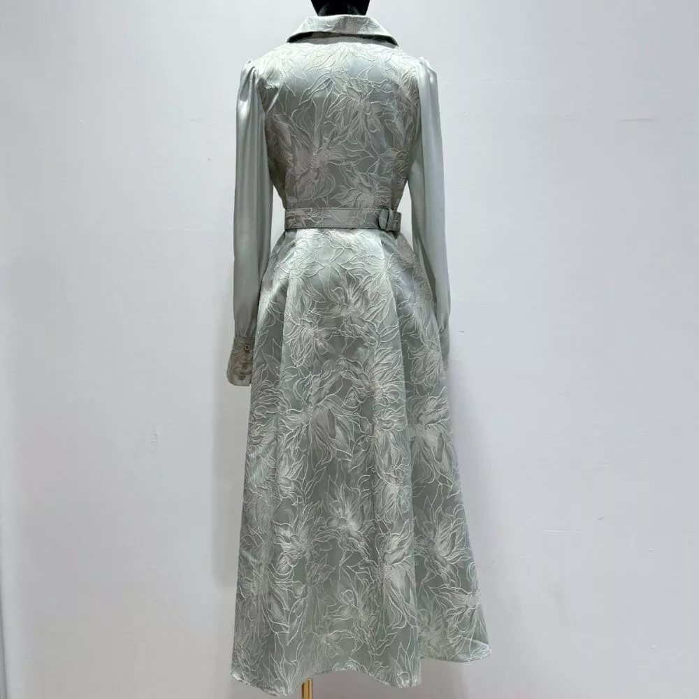 Vestito lungo elegante dal design raffinato, pensato per valorizzare la silhouette con equilibrio e femminilità. La linea scivolata della gonna crea un movimento fluido e leggero, mentre la cintura coordinata definisce il punto vita con precisione, donando una vestibilità armoniosa.