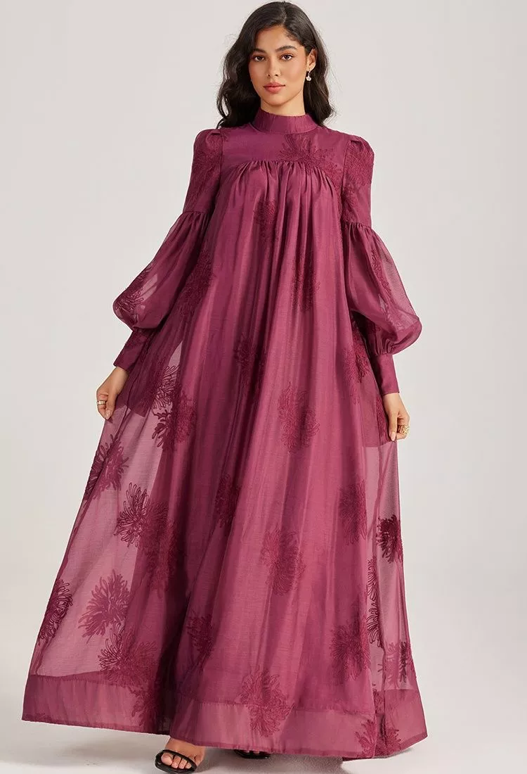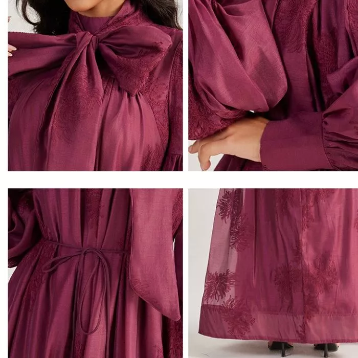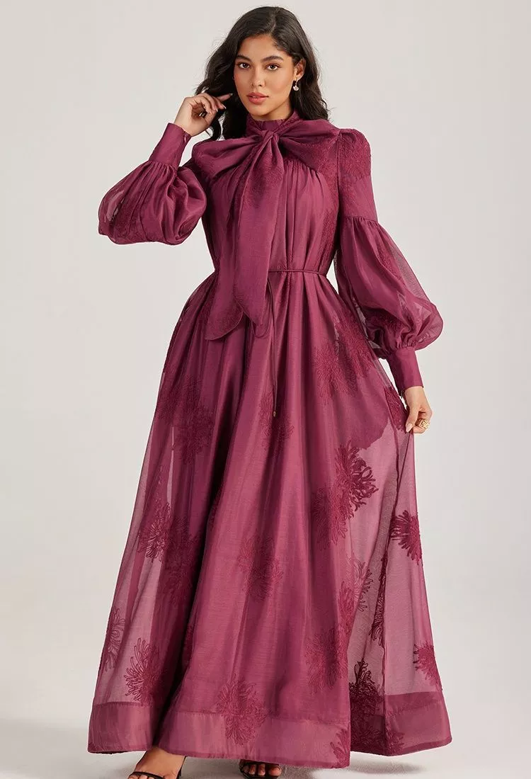 Vestito Lungo Porpora Con Fiocco E Maniche Balloon Chic CF55506