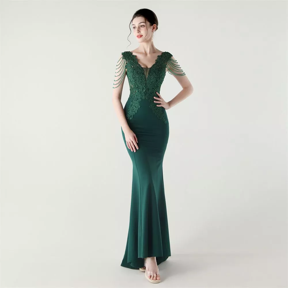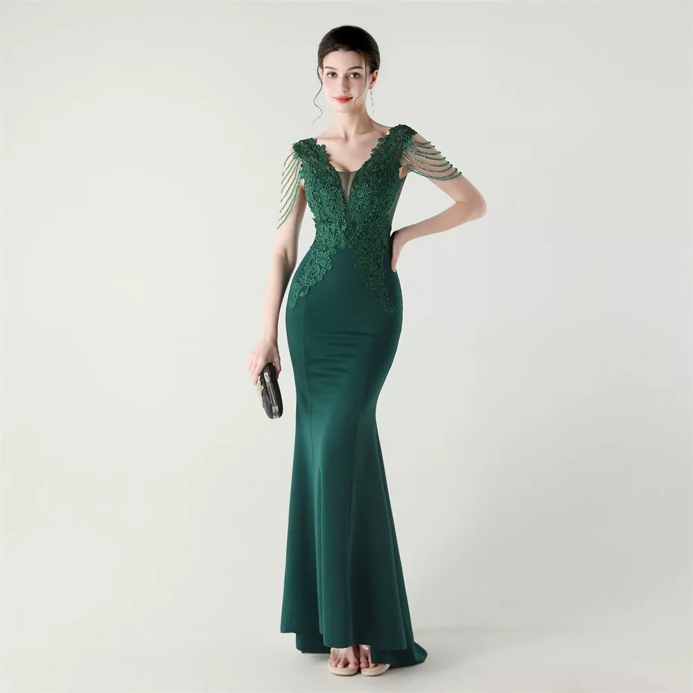 Vestito Lungo Verde Sexy Con Schiena In Pizzo Ricamato E Stile Sirena CF53532