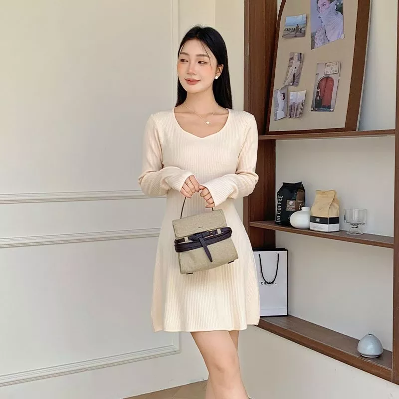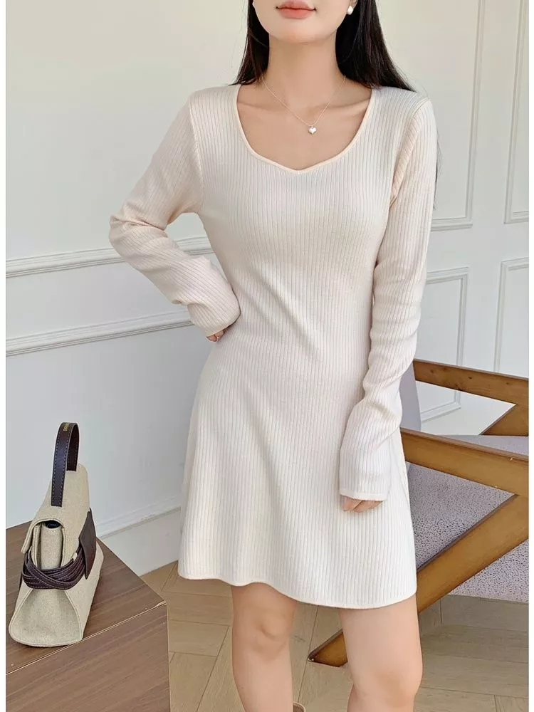 Elegante e confortevole, questo abito in maglia a maniche lunghe valorizza la figura con la sua linea leggermente svasata e lo scollo a cuore che dona femminilità senza eccessi. Il tessuto elasticizzato offre una vestibilità comoda, ideale per il tempo libero, l'ufficio o un'uscita serale.