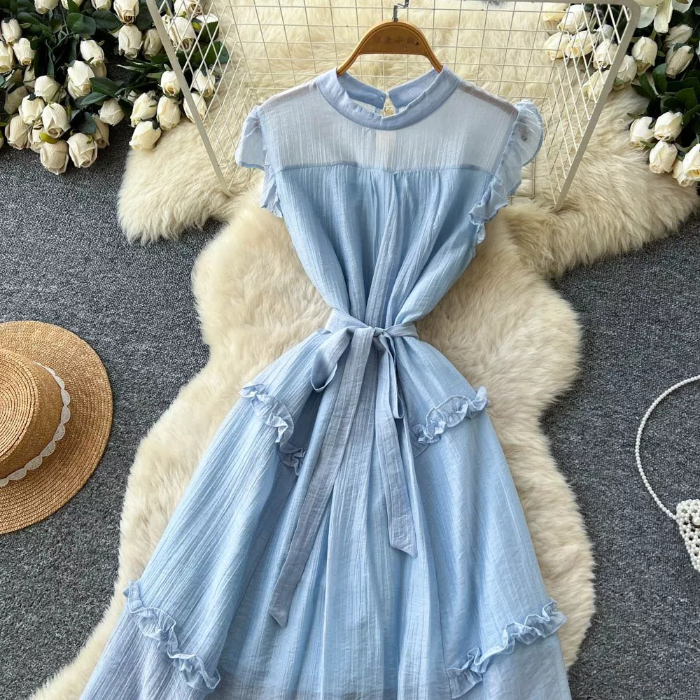 Vestito Midi Azzurro Polvere Con Cintura Romantico Giorno CF67835