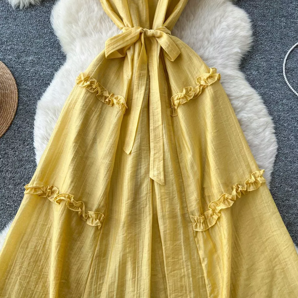 Vestito Midi Giallo Burro Con Cintura Bon Ton Leggero CF67835